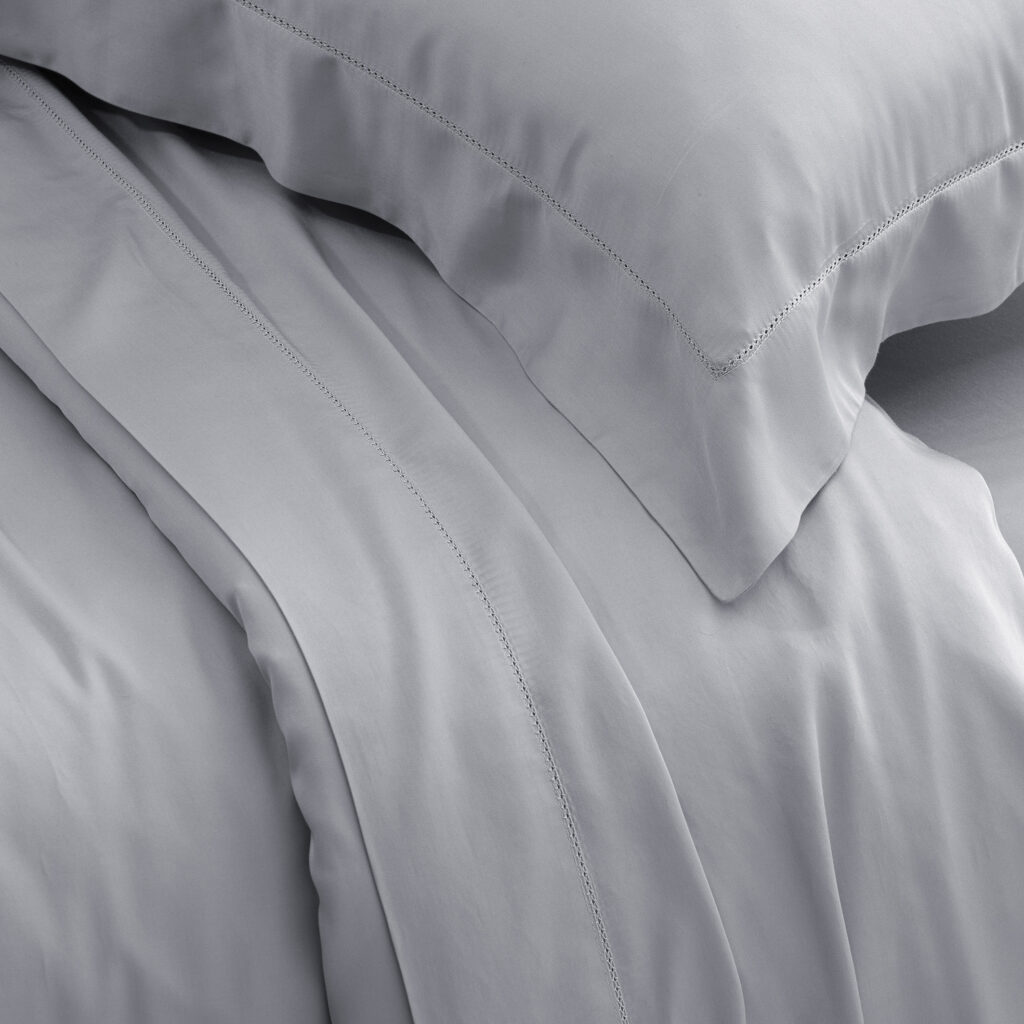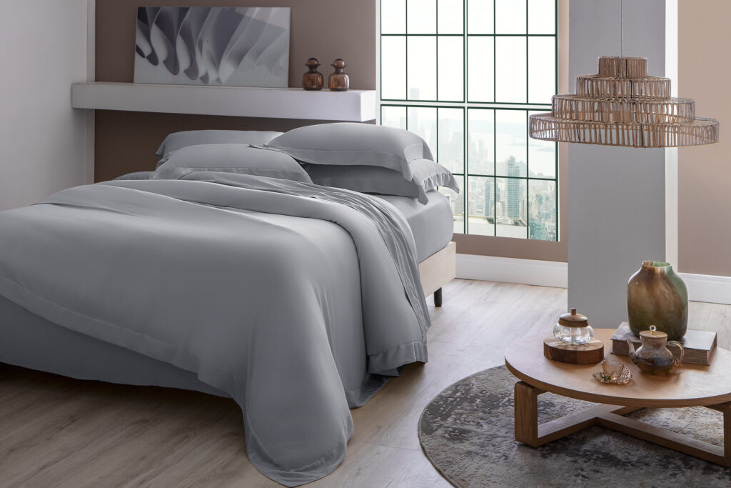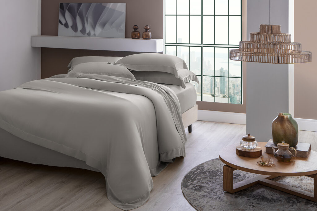 Tecido desenvolvido a partir da polpa do bambú com alta densidade de fios, possui propriedades naturalmente hipoalergênicas, bactericidas e antiácaros, inibindo odores.